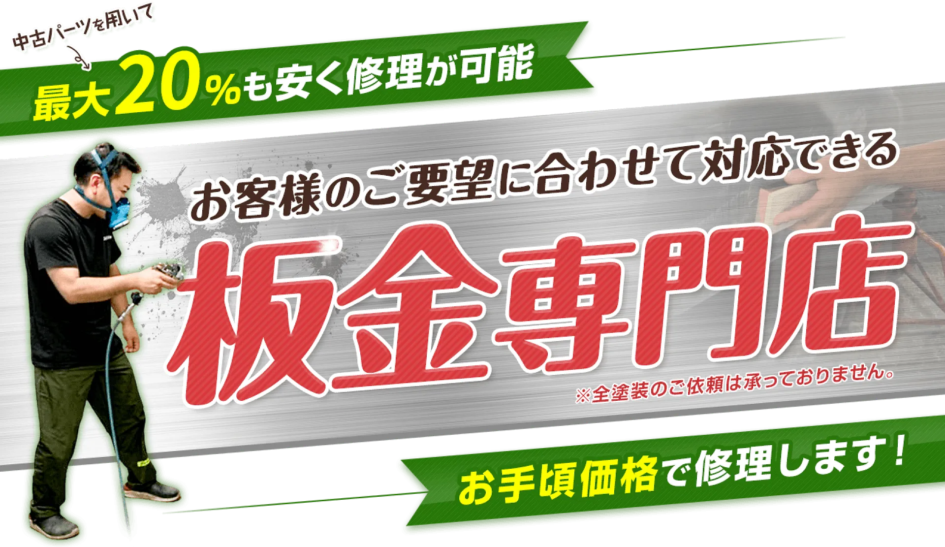 板金塗装(キズ・へこみ修理)の仕上がりは職人の腕と設備力によって雲泥の差が出ます。