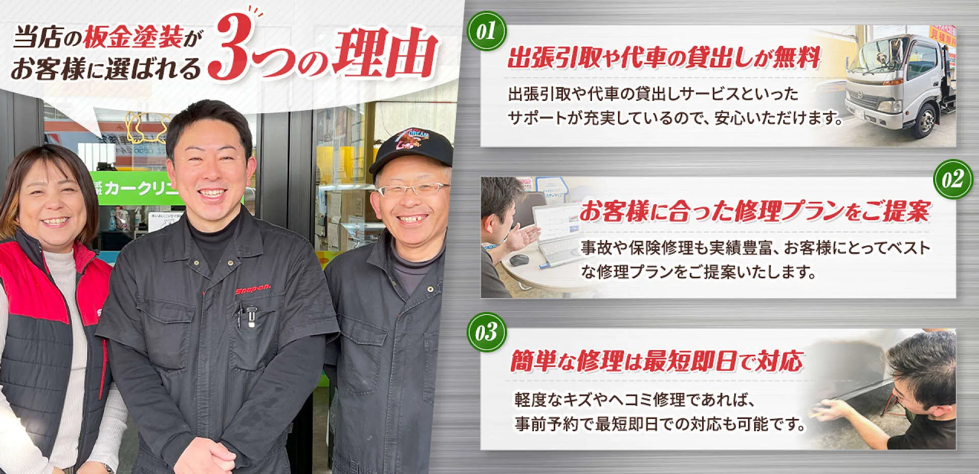 軽度なキズやヘコミ修理であれば最短即日での対応※も可能です。
