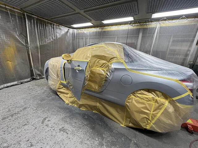 板金作業でキズ・へこみの修復を行ってから、塗装作業という流れになります。