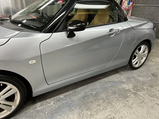 筑西市にお住いのお客様より、ダイハツ コペンのフロントドアのキズ・へこみ修理のご依頼をいただきました。