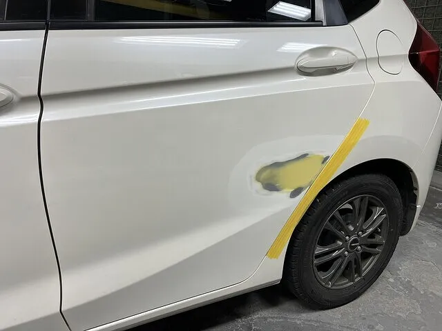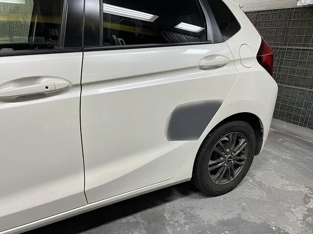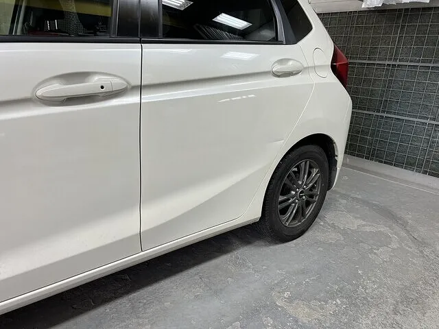 筑西市にお住いのお客様より、ホンダ フィット ハイブリッドのリアドアのキズ・へこみ修理のご依頼をいただきました。