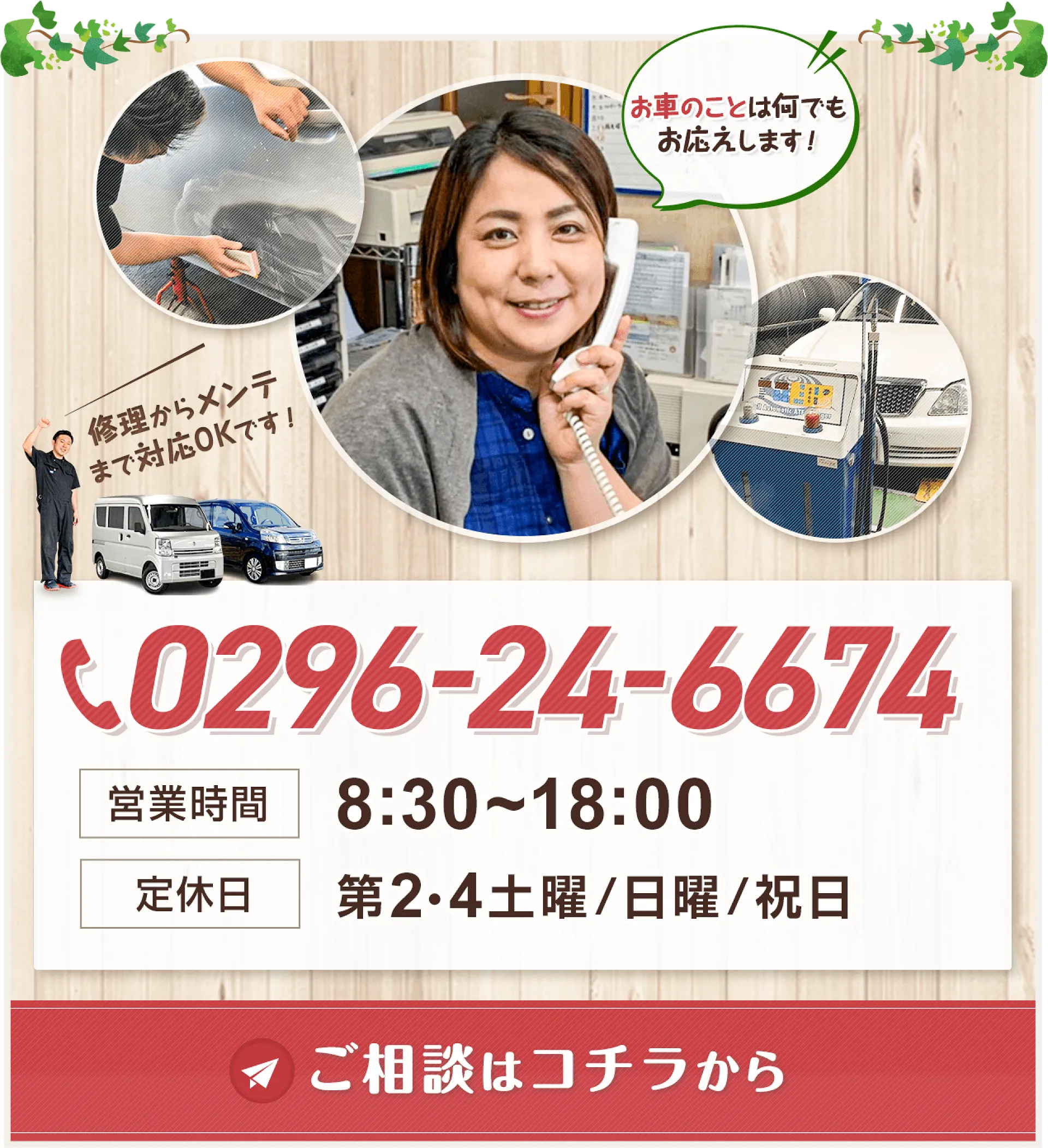 保険に関するお問合せはお電話のみでのご対応となります。お手数ですが、0296-24-6674までご連絡をお願いいたします。