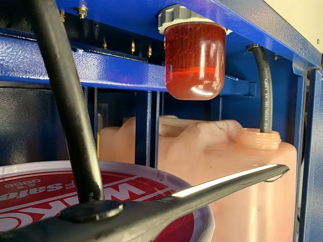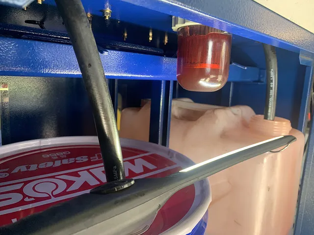 問題がなければトルコン太郎と繋げて最初に抜けた分を補充してからATF交換を開始。設定したオイル量が抜き取られ、新しいオイルが入っていきます。オイルが循環することで、トルコン太郎内のフィルターをオイルが通過。その際に不純物を除去してくれるんです。