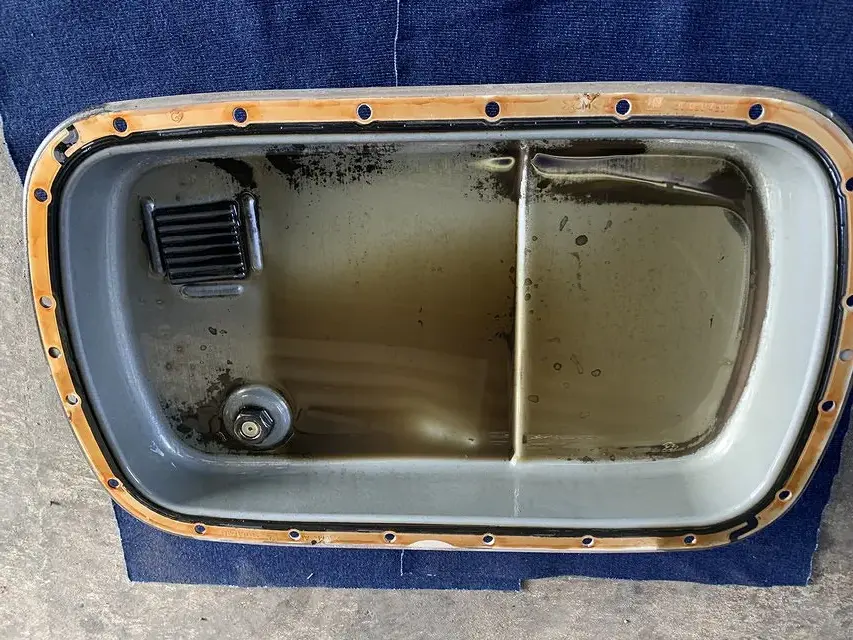 まずはオイルパンの中のオイルを抜き、オイルパンを外します。