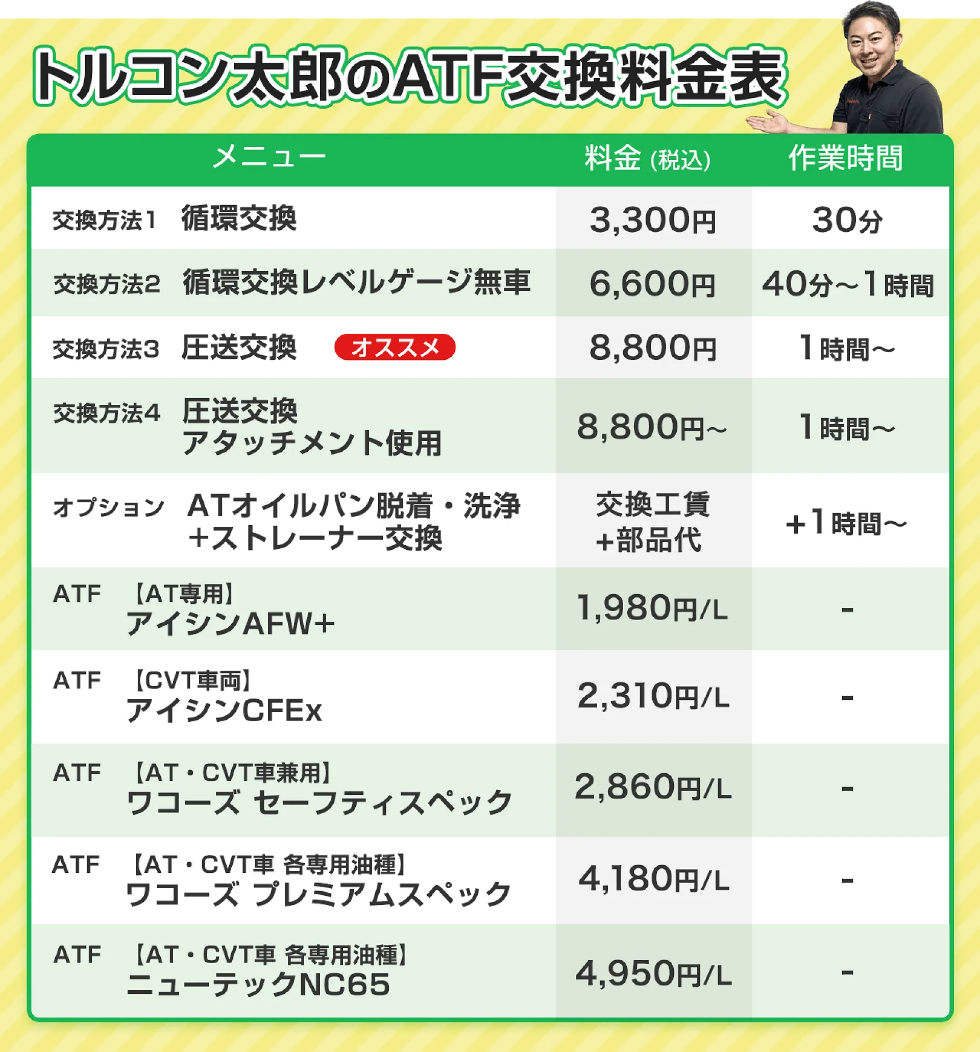 筑西市で、過走行車でもATF交換ができる! トルコン太郎の料金表と詳細