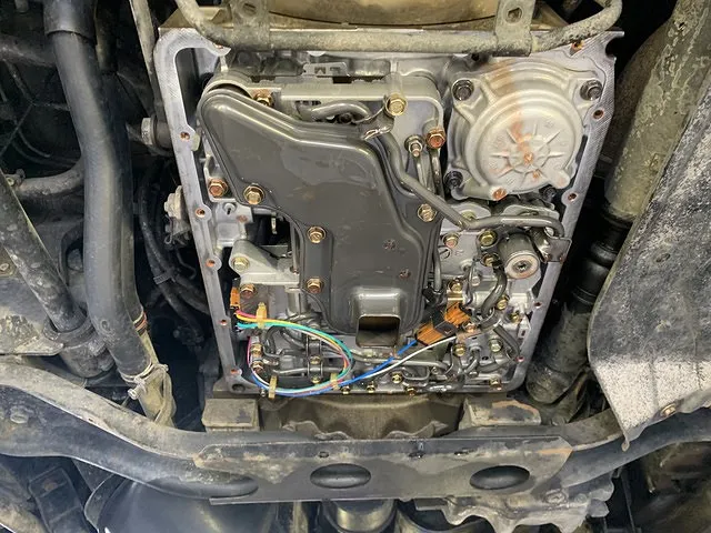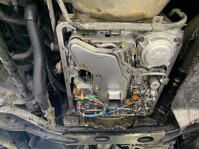 清掃後は、元通りにオイルパンを組み付けたら、いよいよトルコン太郎での圧送交換を実施します。
