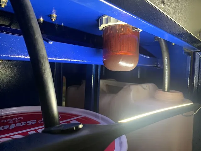 問題がなければトルコン太郎と繋げて最初に抜けた分を補充してからATF交換を開始。設定したオイル量が抜き取られ、新しいオイルが入っていきます。オイルが循環することで、トルコン太郎内のフィルターをオイルが通過。その際に不純物を除去してくれるんです。