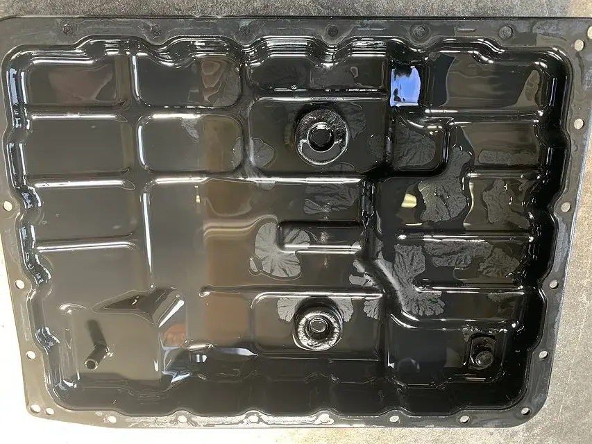 【1】オイルパンの中のオイルを抜き、オイルパンを外します。