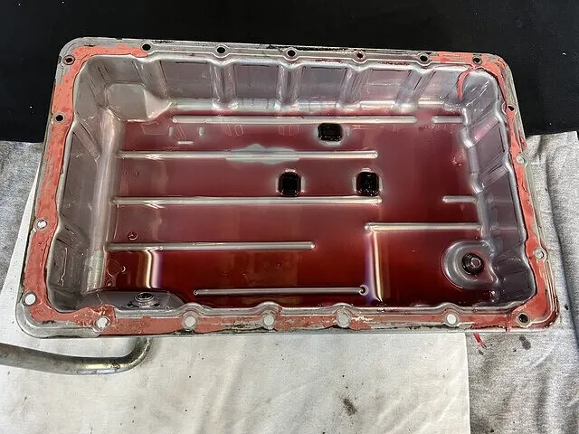 まずはオイルパンの中のオイルを抜き、オイルパンを外します。