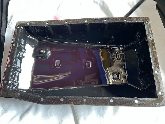 まずはオイルパンの中のオイルを抜き、オイルパンを外します。