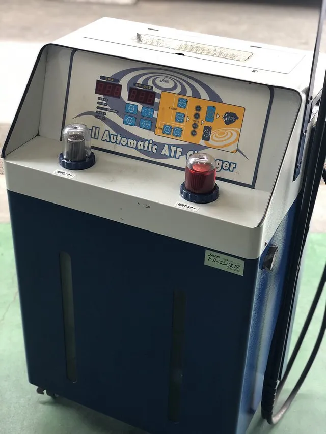 茨城県筑西市にあるカークリック杉山は、過走行車のオートマオイル交換(ATF交換)ができる、圧送式ATF交換機器「トルコン太郎」の設置店。圧送交換は汚れを巻き上げることが無く、安全にATF交換が可能なんです。